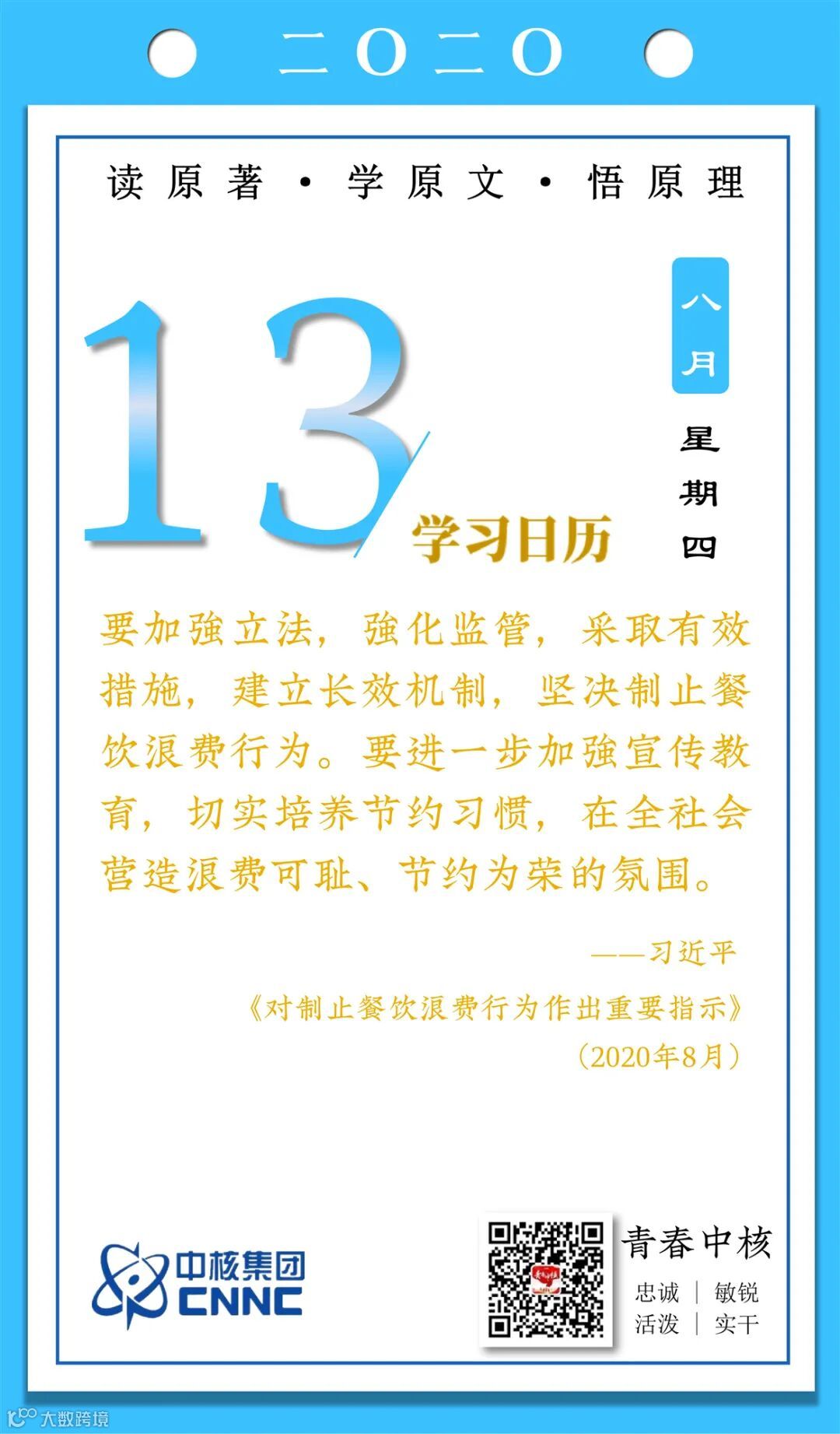 8月13日,秦山核电青年的《学习日历》