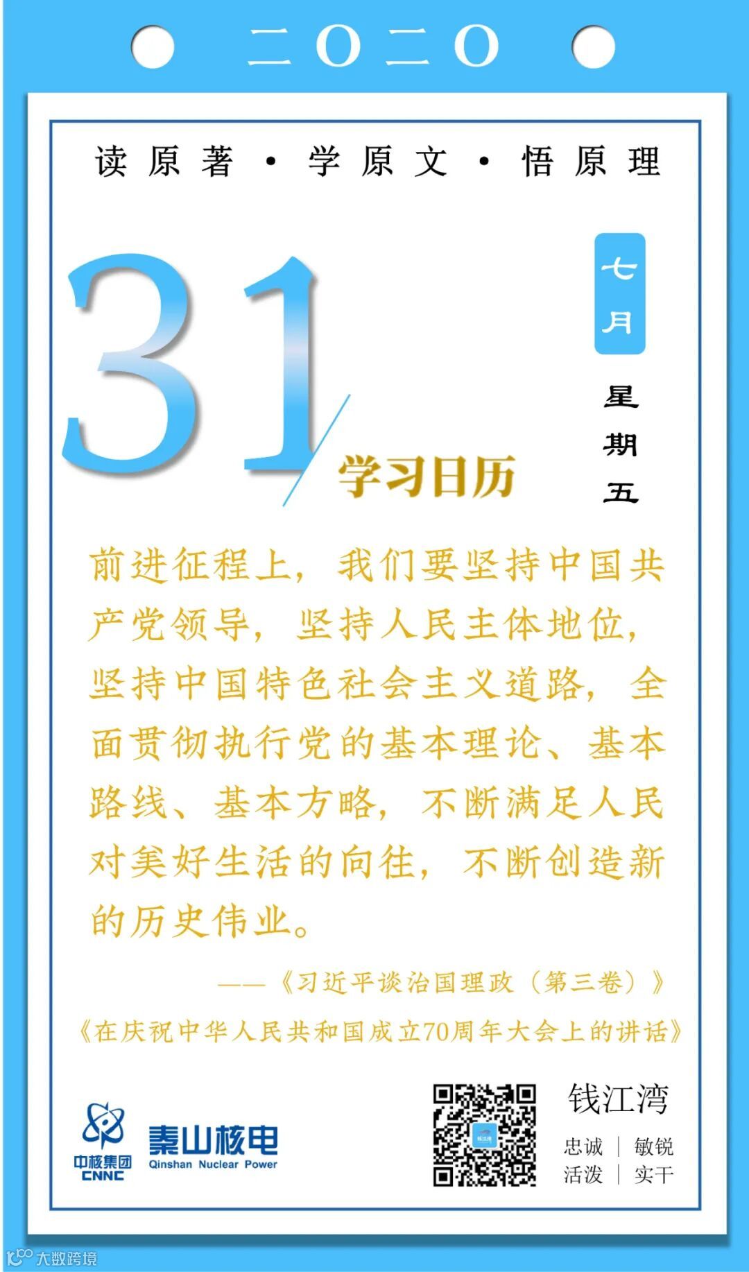 7月31日,秦山核电青年的《学习日历》