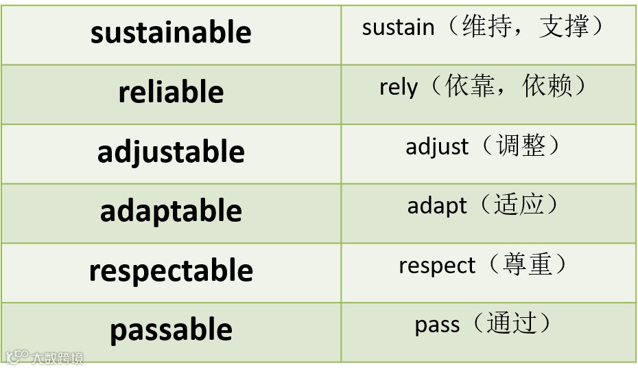 后缀-able多为形容词,一般用在及物动词的后面,