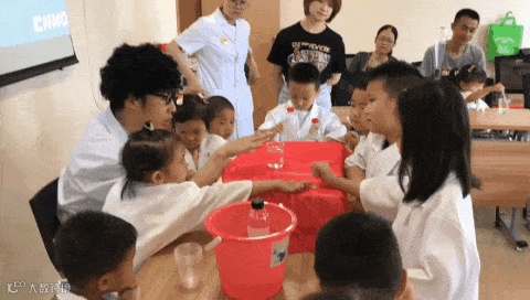 活动场地选取在南门社区二楼教室,在湿哒哒的梅雨季,13组家庭一同来玩转湿哒哒的水实验。本次活动得到了核电青年和海盐地方青年的热烈支持,活动名额几分钟内便一抢而空。