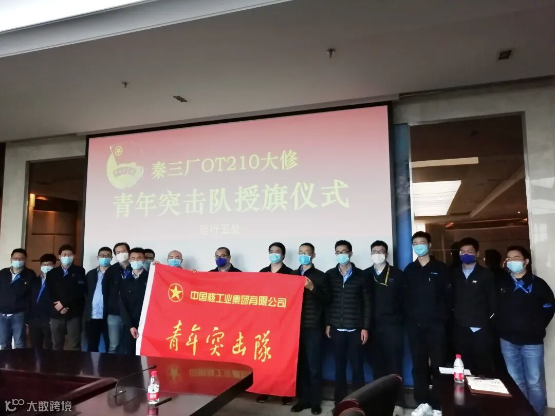 4月27日下午,秦山核电运行五处举行OT210大修青年突击队授旗仪式。运行五处副处长李武平主持仪式,秦三厂副厂长吴明亮、运行五处党总支部书记周俊杰、运行五处主任工程师李宇明及公司团委书记张宪超参加了授旗仪式。