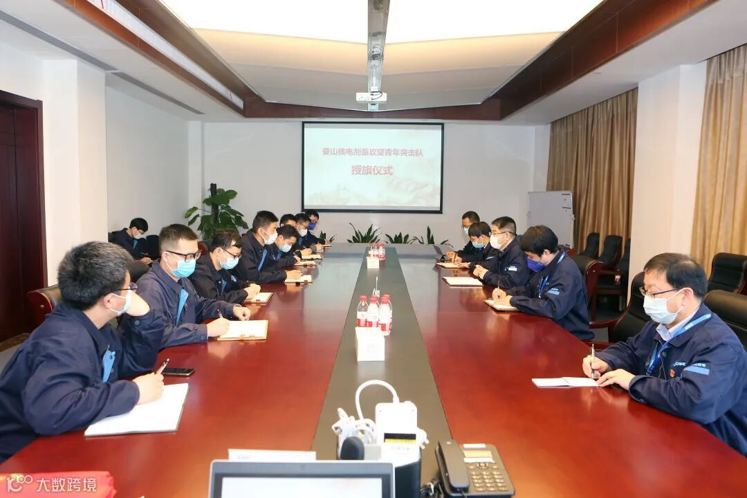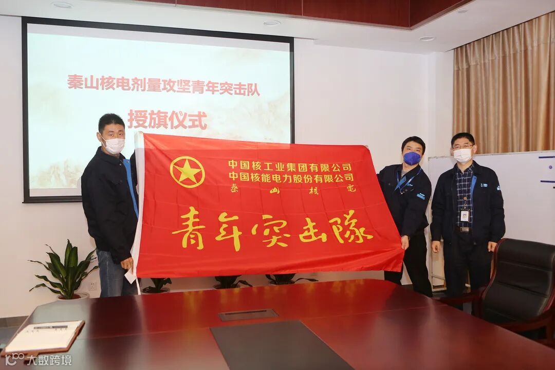 秦山核电剂量攻坚青年突击队授旗仪式于2020年4月10日在秦山核电综合楼202会议室举行,公司副总经理董军成、公司团委书记张宪超、保健物理一处党支部书记徐宏明、保健物理二处党支部书记李厚文、保健物理三处党支部书记王孔钊出席了授旗仪式。