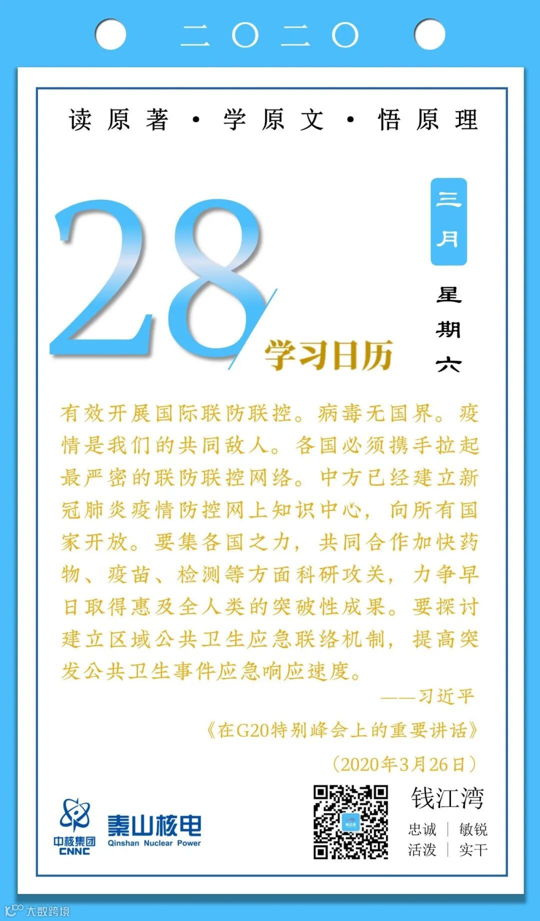 3月28日,秦山核电青年的《学习日历》