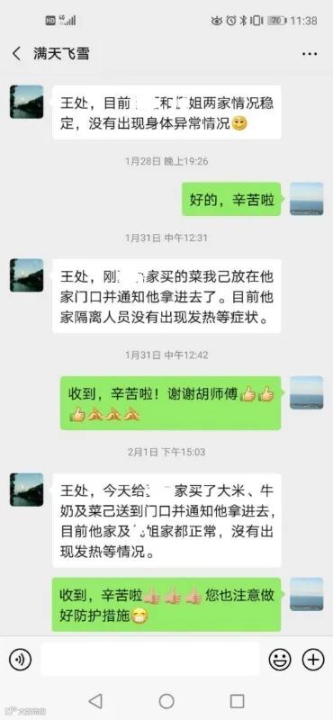 青年突击队员胡述东、施嘉、王建、杨友生等同志,在这次疫情防控工作中,还承担着为居家隔离人员帮扶巡查任务,他们不仅要每日巡查确保隔离有效进行,还每天了解居家隔离人员的生活和身体状况,并给他们送去生活必需品,让每一户隔离家庭都感受到保卫处这个大集体的关心。