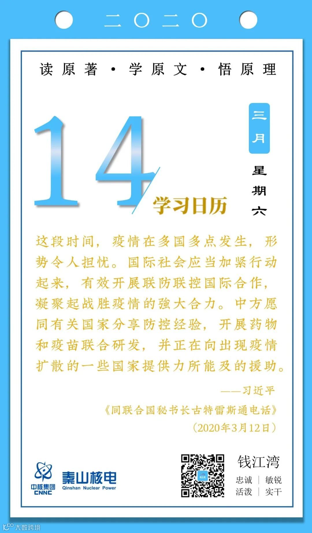 3月14日,秦山核电青年的《学习日历》