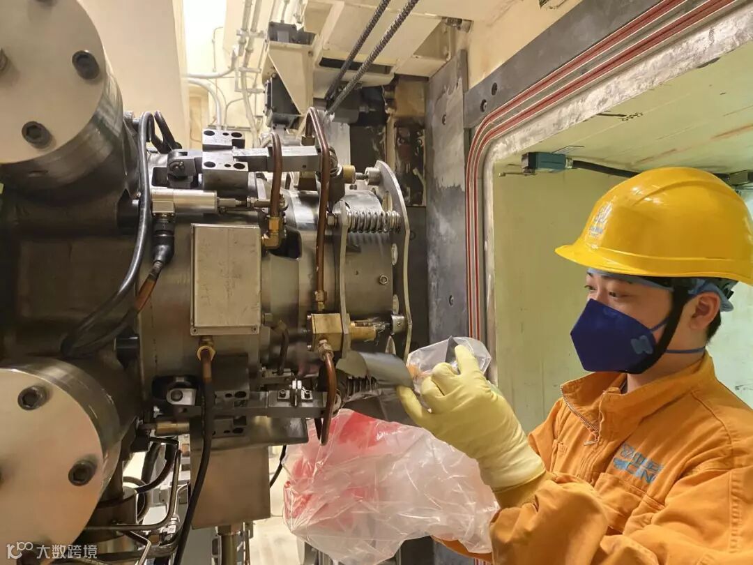 图为维修人员对车间内的备用装卸料机进行疏水操作