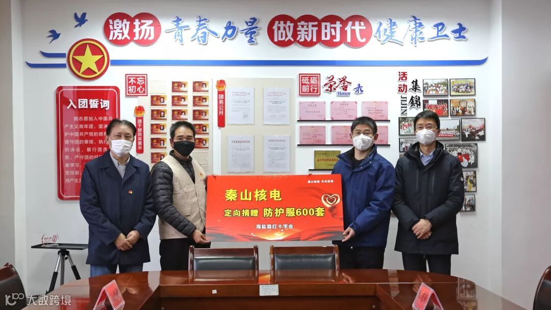 2月11日上午,秦山核电向海盐县红十字会捐赠600套无纺布防护服,供海盐县疫情防控一线的医护人员使用。此次捐赠是通过海盐县红十字会定向捐赠的方式进行。秦山核电总经理邹正宇、副总经理董军成,海盐县副县长陈峰在县疾控中心举行简短的捐赠交接仪式。