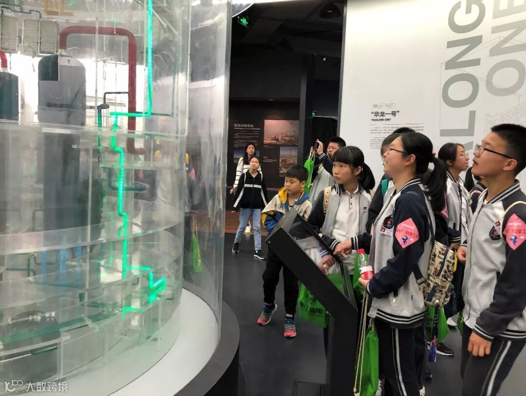 参观之路从核电科技馆“中国核电之路”开始,同学们学习核电发展史,了解核能发电原理,探究核电站内部结构。同学们井然有序,认真倾听讲解员的每句话。