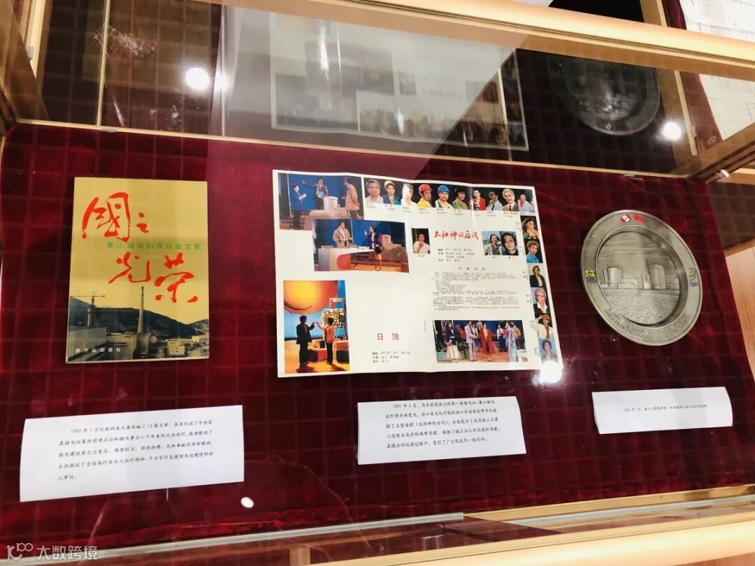 老物件展柜中有孙绍兴同志提供的1981年的工作证、1984年的工作服、1991年庆祝秦山核电站并网发电纪念手表;吴观星同志提供的恰希玛核电站调试报告;还有第一部反映秦山核电站创业史报告文学《国之光荣》等;退休职工王南江自创自制的MV《我来自秦山》唱出了秦山核电人攻坚克难、勇往直前的精气神。
