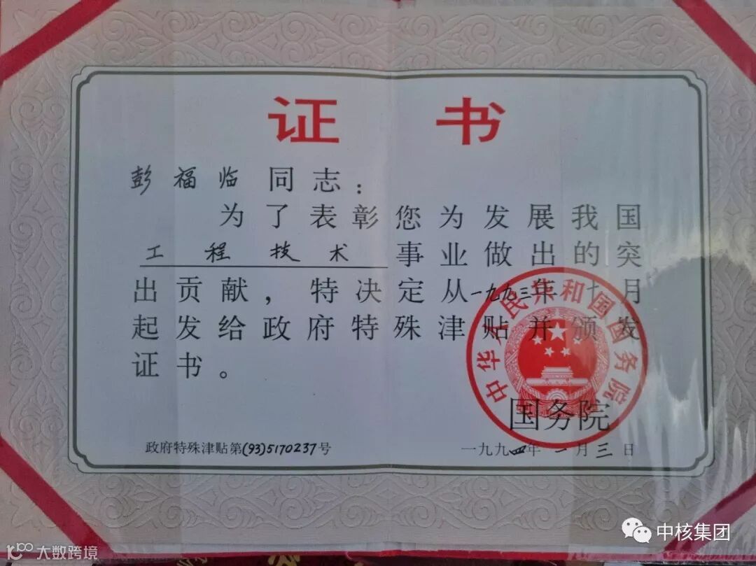 1963年元旦,彭福临熬更守夜,编写了铀浓缩系统试验方案及辅助系统庞杂的配套方案。在理论技术指导下,某机型取得了首次试验成功。他先后提出并解决了系统中“腐蚀损耗测量”和“丰度产能增加”等技术难题,成果被广泛推广应用。终于,1964年元月,高浓铀合格产品在中国首次“问世”。