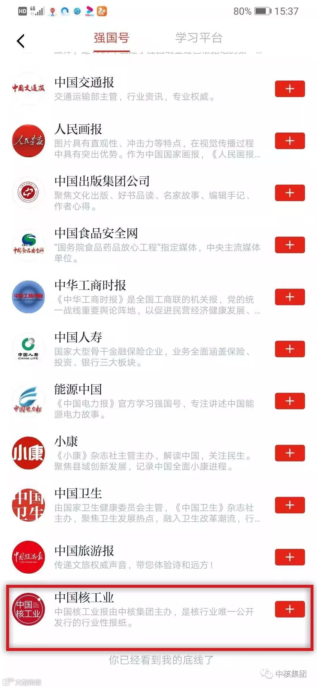 《中国核工业报》和《中国核工业杂志》正式入驻学习强国强国号,大家有全新频道关注来自核工业一线的故事和声音啦!强国号官方名称:中国核工业。