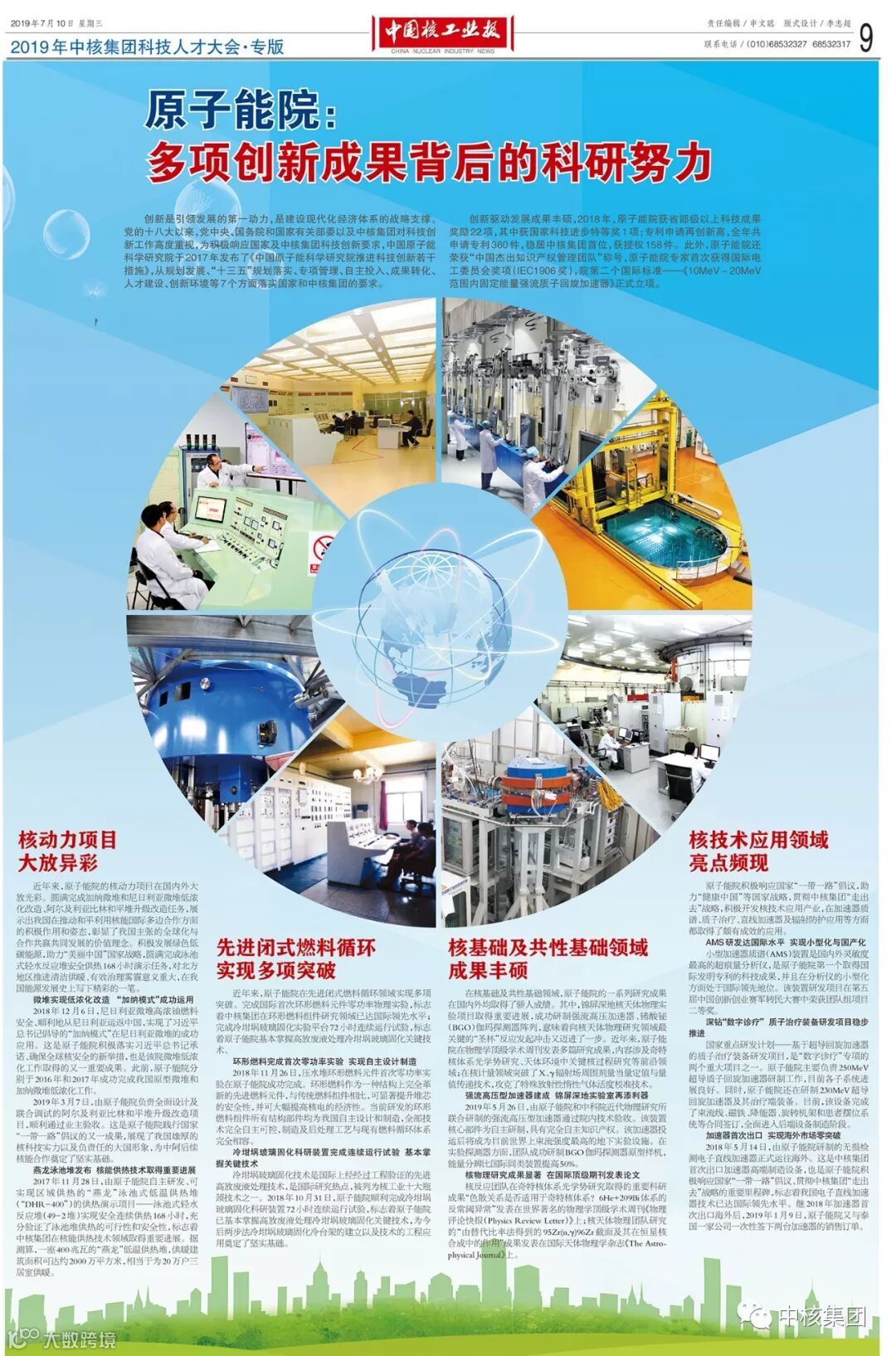 创新驱动发展成果丰硕,2018年,原子能院获省部级以上科技成果奖励22项,其中获国家科技进步特等奖1项;专利申请再创新高,全年共申请专利360件,稳居中核集团首位,获授权158件。此外,原子能院还荣获“中国杰出知识产权管理团队”称号,原子能院专家首次获得国际电工委员会奖项(IEC1906奖),院第二个国际标准——《10MeV~20MeV范围内固定能量强流质子回旋加速器》正式立项。
