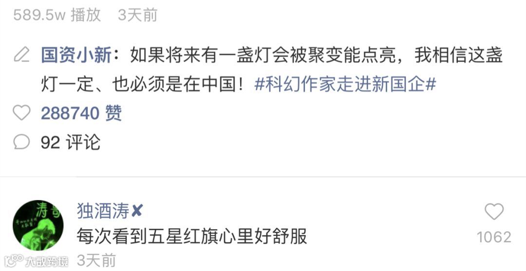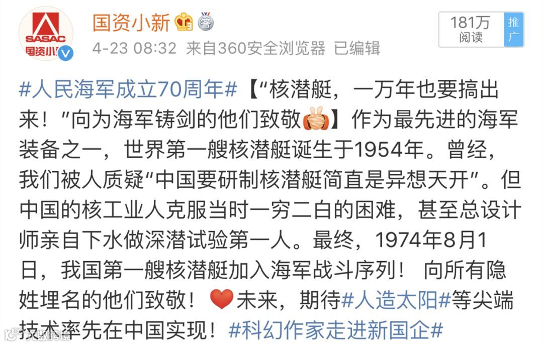目前,由@国资小新 主持发起的#科幻作家走进新国企#系列微博话题总阅读已达1.2亿,相关讨论微博5万条。