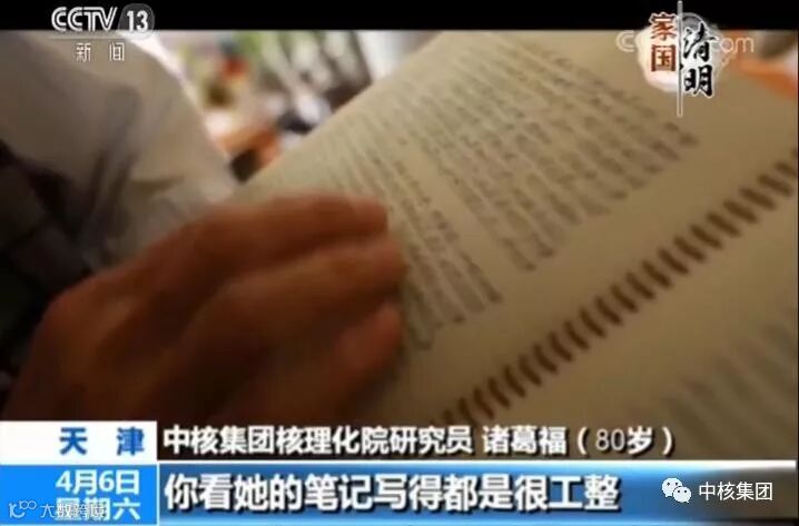 中核集团核理化院研究员诸葛福:她当时看不清,用那个美国带回来的一个长条放大镜,先按字母自己描,描深了,然后再看看,完了之后把我找去,她再一个一个字一句一句话给我修改。