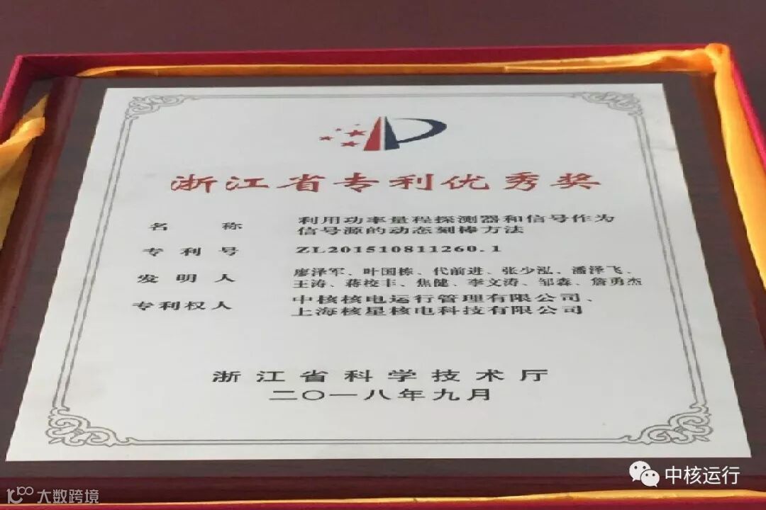 近日,浙江省科技厅发布《关于表彰2018年度浙江省专利奖获奖项目的通报》文件,中核运行申报的《利用功率量程探测器和信号作为信号源的动态刻棒方法》获得优秀奖。这也是中核运行成立以来首次获得省级专利奖。