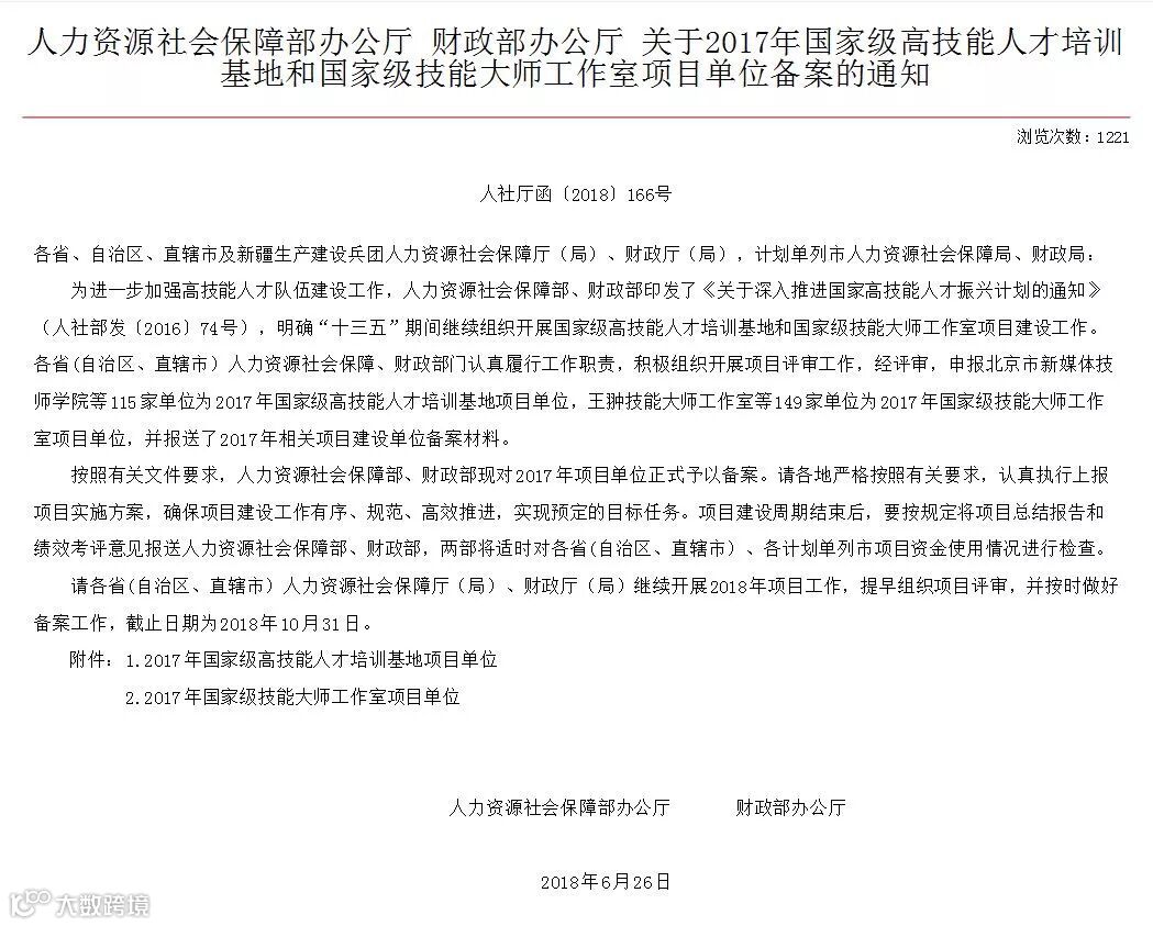 近日,国家人力资源和社会保障部下发《关于2017年国家级高技能人才培训基地和国家技能大师工作室项目单位备案的通知》,我公司何少华工作室位列其中,标志着何少华工作室已正式成为“国家级技能大师工作室”,秦山核电也成为当前全国第一家也是唯一一家拥有国家级技能大师工作室的核电单位。