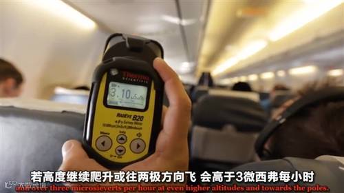 在飞机上受到辐射最大是在飞往两级时,这时的辐射剂量已经达到了3微西弗每小时。