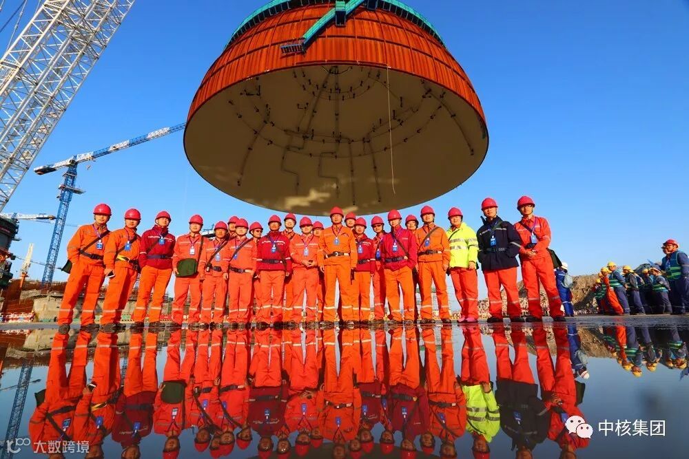 虽然天公不做美,下雨、刮风。但中核人凭借高超的技术提前完成了穹顶吊装,用行动打破三代核电站建设首堆必拓的魔咒,向世界展示了中国人的又一个超级工程。