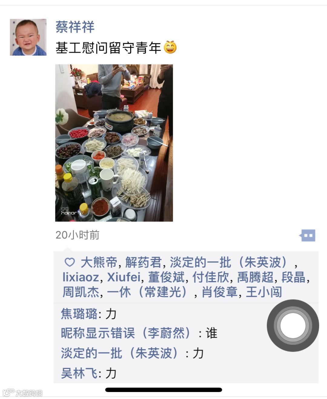 下班了,厂区宁静祥和,南苑张灯结彩。早已结束年夜饭的人们等待2018零点钟声到来,期盼我们下班的是家人和她们准备的那桌热气腾腾的“年夜饭”。老员工没有忘记叫上单身青年的、家人不在身边的“留守”人员。
