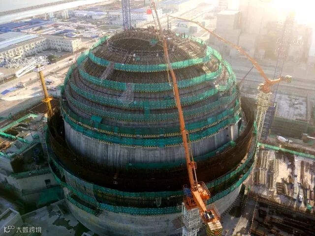 继三台蒸汽发生器全部就位后,今日,“华龙一号”全球首堆示范工程福清5号机组再传捷报:内层安全壳封顶顺利完成。