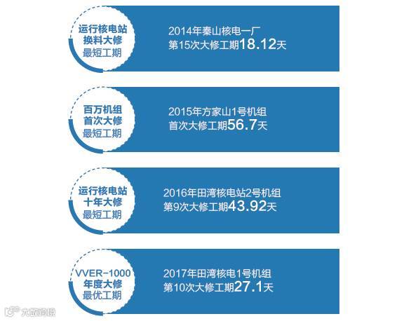基于此,我们实现了大修安全、质量、进度、成本的全面管控,并不断创造国内大修的最佳业绩,特别是田湾核电2号机组十年大修43.9天,秦山二期3号机组实现连续三次年度大修工期30天以内且修后无非停;更重要的,是大修后我们都创造了良好的运行业绩。