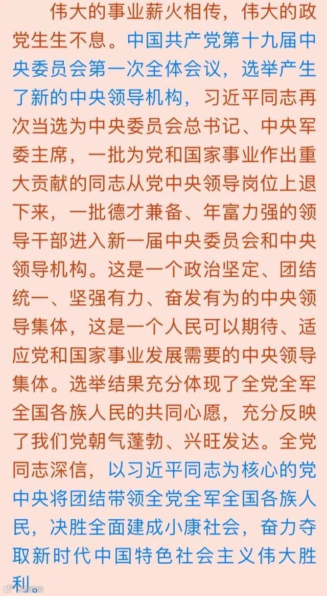 (据《人民日报》2017年10月26日第6版,原标题《引领新时代的坚强领导核心》)