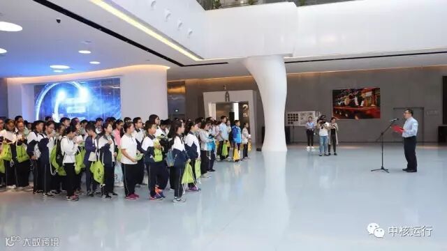 同学们一走进科技馆大门就被直径近8米科技馆数据展示中枢——亚洲最大的室内LED球屏所吸引,各个仰着小脸,嘴里不时发出惊叹声。在LED球屏下,同学们排列整齐,进行了一个简单的活动开始仪式。秦山核电党群工作处高飞处长向老师、同学们介绍了核电科技馆的大致情况,布置了本次活动的任务。