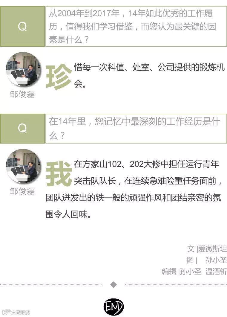 时间会证明某些东西。邹俊磊几乎亲历了方家山的调试和运行,而方家山也见证了他成为一名成熟的运行值值长。