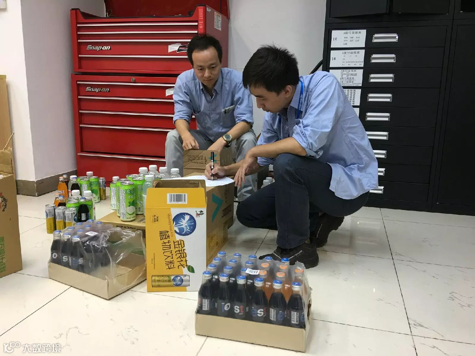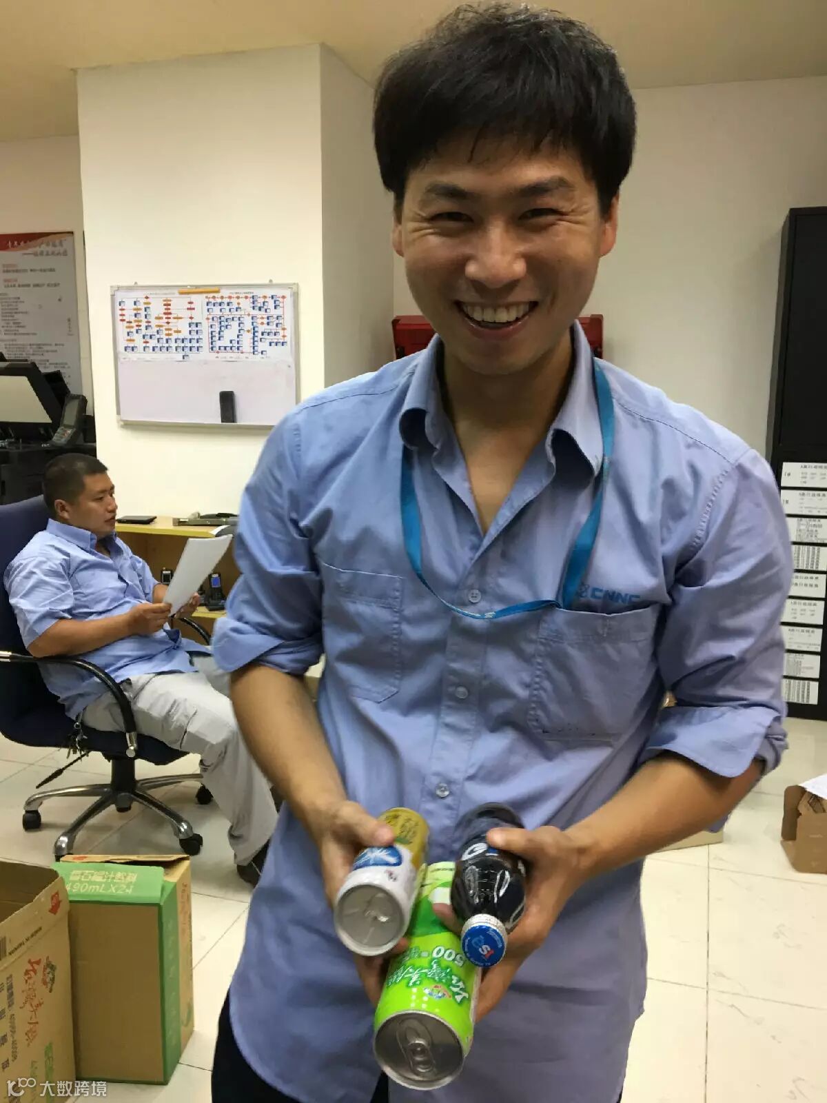 干活休息中,共饮盐汽水。
