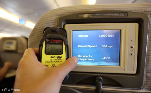 当飞行高度处于18000英尺时,辐射量为0.5微西弗每小时;23000英尺时,辐射量则上升至1微西弗每小时;继续上升至30000英尺时,辐射量直接翻倍变为2微西弗每小时。