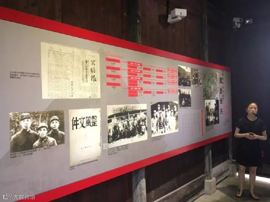 在讲解员带领下,从正门而入,旧址原为清代光绪年间沈氏大户民宅,砖木结构楼房,正屋为三进五间两厢房,西面有十一间侧屋。整幢房屋有三条与侧屋贯通的备弄,与正屋前后三进相互连接,布局紧凑,高低有序,错落适宜,体现清末农家大户宅第徽派建筑古朴、庄重的艺术风格。