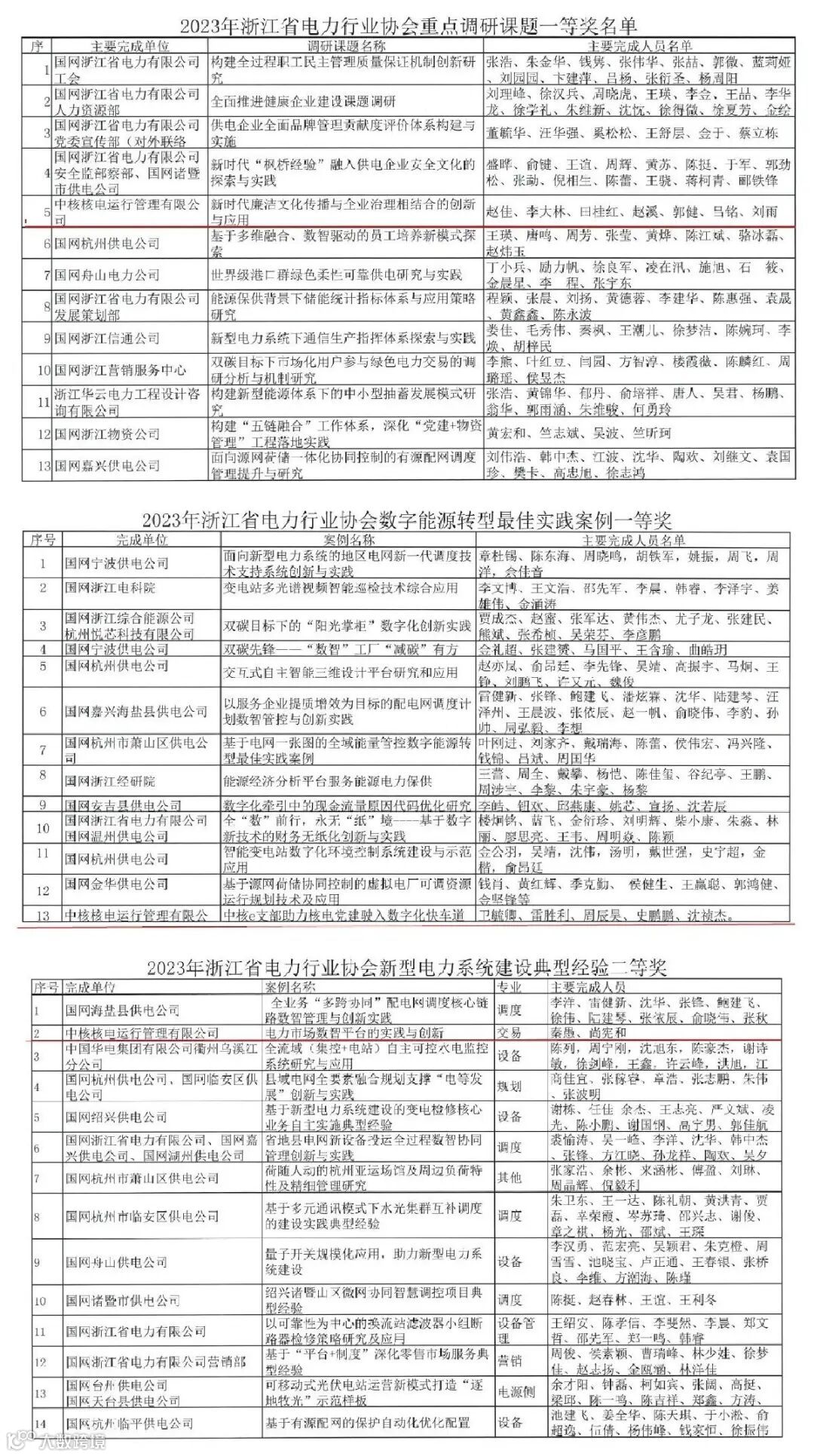 在重点调研课题方面,《新时代廉洁文化传播与企业治理相结合的创新与应用》获一等奖,《大型产业园能源配套解决路径研究》获二等奖,《秦山独立储能电站混合储能应用可行性研究》《核电厂凝汽器管板密封焊缝自动维修技术开发》获三等奖。此外,多项课题在数字能源转型最佳实践案例及新型电力系统建设典型经验等方面斩获奖项。