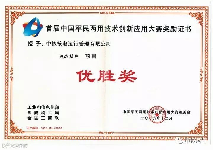 近日,由工业和信息化部、国防科工局、全国工商联共同举办的首届中国军民两用技术创新应用大赛圆满结束。中核运行参赛项目《凝汽器喉部膨胀节氦检漏开发及实施》、《动态刻棒》晋级半决赛并最终获得优胜奖。