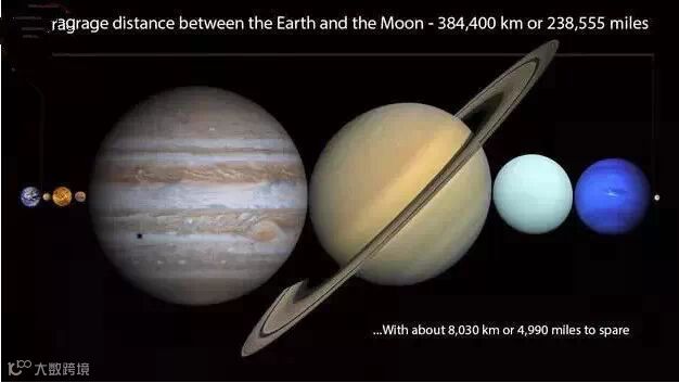 11. 地球到月球的距离貌似很短,但是已经可以塞下太阳系的所有星球了。