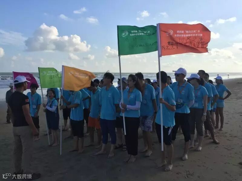 到达美丽的三亚,营员们进行研究饭前拓展训练,其中有个环节是蒙着眼睛走向对方,有的营员竟然直到了海里,妙趣横生,欢笑不断,最后在瑰丽的夕阳下结束了今天的行程。