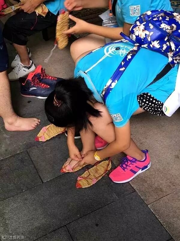 看到这草鞋,想起七律长征“红军不怕远征难,万水千山只等闲,五岭逶迤腾细浪,乌蒙磅礴走泥丸”这草鞋的装备一换上,嘿~别说,我们的小营员们还真有那么点红军的意思。看,营员们换好装备,还不忘把自己换下的鞋子归置整整齐齐,要给他们32个赞呢!