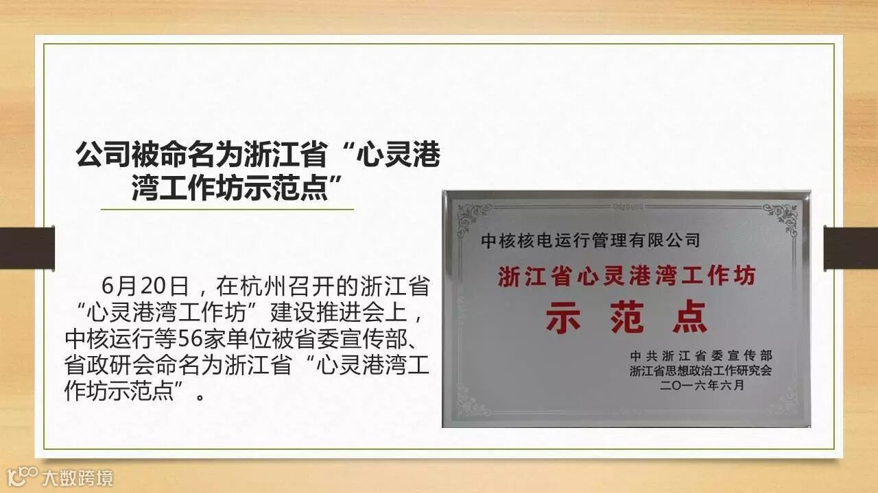 中国核电发源地,全国文明单位,全国爱国主义教育示范基地,全国科普教育基地,全国军工文化教育基地,全国核科普教育基地,全国中小学生研学实践教育基地,全国工业旅游示范点,中核集团党性教育基地,浙江省生态文明教育基地。