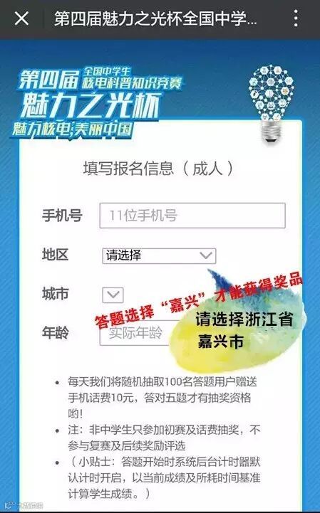 地区请选择“嘉兴市”才能领取由秦山核电提供的奖品哦!