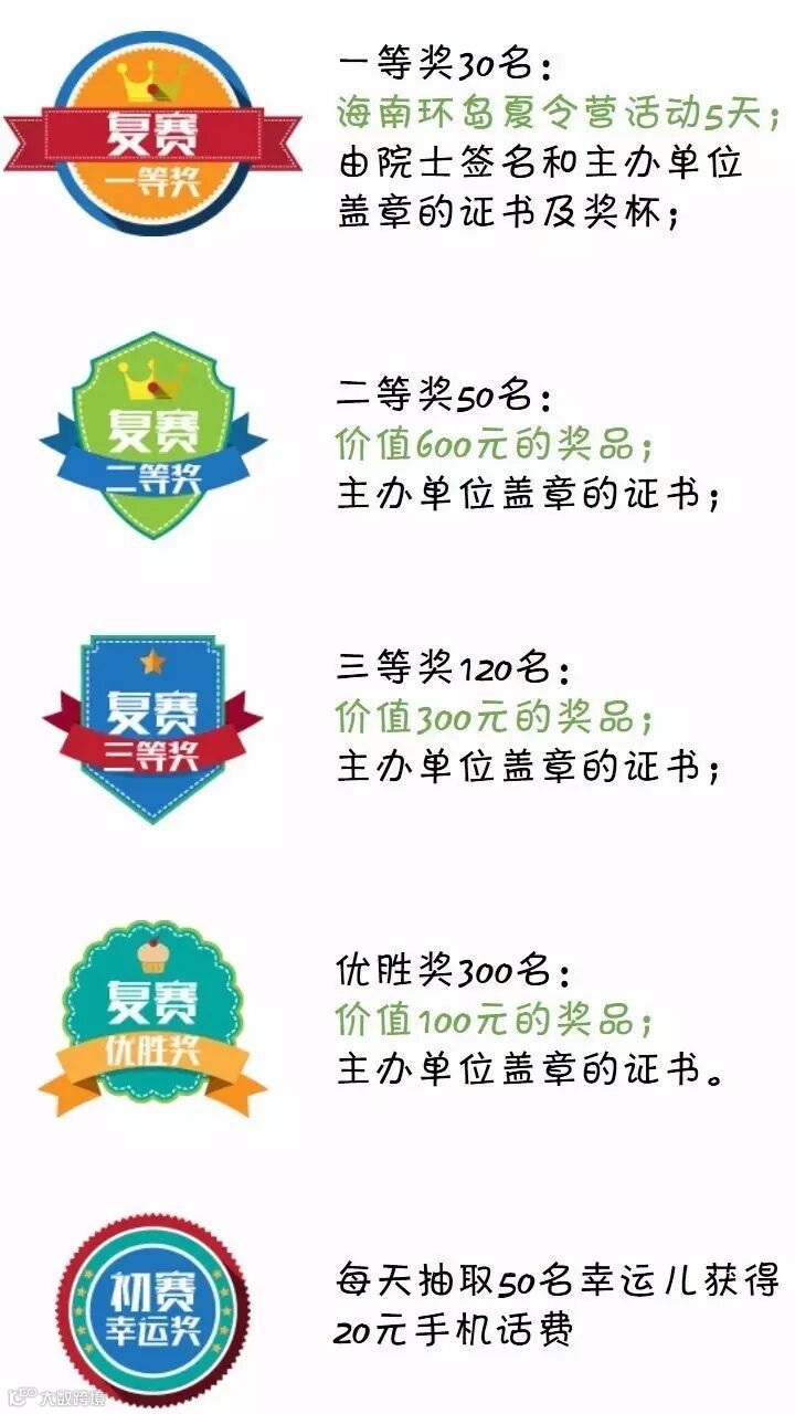 活动取得一等奖成绩的中学生将获得参加海南环岛夏令营活动的资格。