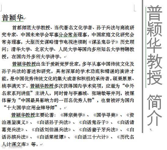 二、讲授地点:枫叶村闻琴苑科技报告厅; 三、主 讲 人:普颖华 首都师范大学教授、当代著名文化学者、孙子兵法与商战研究专家、中央电视台《百家讲坛》节目主讲人; 四、讲座主题:“《孙子兵法》大智慧”; 五、参加范围:秦山地区全体员工、离退休老同志、员工家属及其他感兴趣人士等;