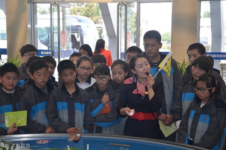 同学们首站来到秦山核电基地模型展厅,讲解员热情详细的介绍了我国核电及秦山核电的发展历程。秦山核电基地现有的9台机组运行发电,总装机容量达到654.6万千瓦,年发电量约500亿千瓦时,是目前国内核电机组数量最多、堆型最丰富、装机最大的核电基地。
