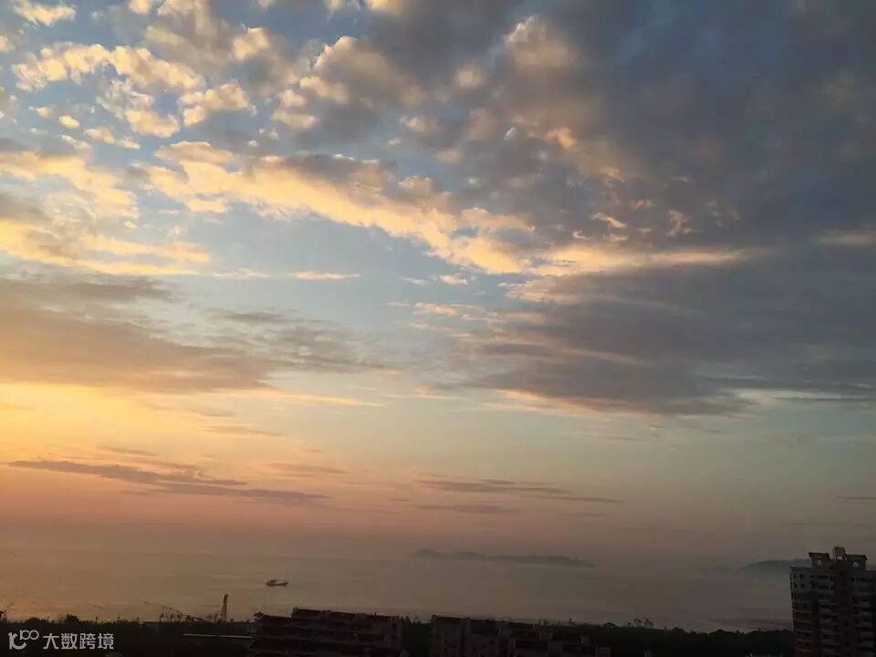 想念这样一个初冬的早晨,太阳自海上升起,浅蓝色的天空,云朵旖旎,光线延伸,陆地、海水、云层、天空、颜色渐次舒展。
