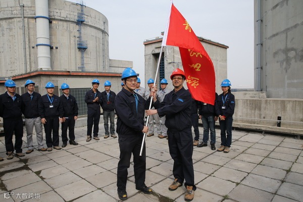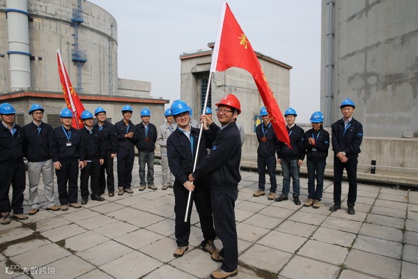 在授旗仪式上,运行二处、维修二处、调试队的党总支部书记分别代表公司向方家山核电运行、维修、调试青年突击队进行了授旗。