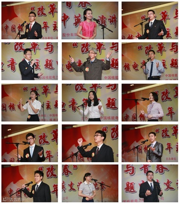 这是五四青年节来临之际,4月17日上午在福清核电,中国核电“改革与青春”青年主题中英文演讲比赛现场的精彩瞬间。来自中国核电10个成员公司的13名选手参加了比赛,各成员公司团组织负责人、青年代表近100人观看了比赛。