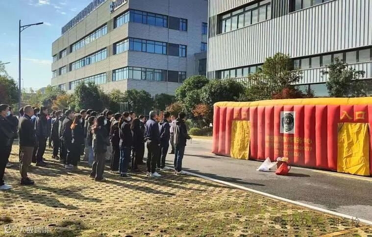 随后,公司开展了室内火灾紧急疏散演练、帐篷屋逃生演练。在仿真演习烟幕中,演练模拟了办公楼因线路短路引发起火,火灾警报器响起,总指挥宣布立刻启动现场应急预案。活动中,各应急小组各司其职,迅速到达指定岗位,员工们反应迅速,手捂口鼻、弯腰前行,按照安全逃生路线快速撤离危险区域。整个疏散及灭火过程秩序井然、有条不紊,演习顺利完成达到预期效果。