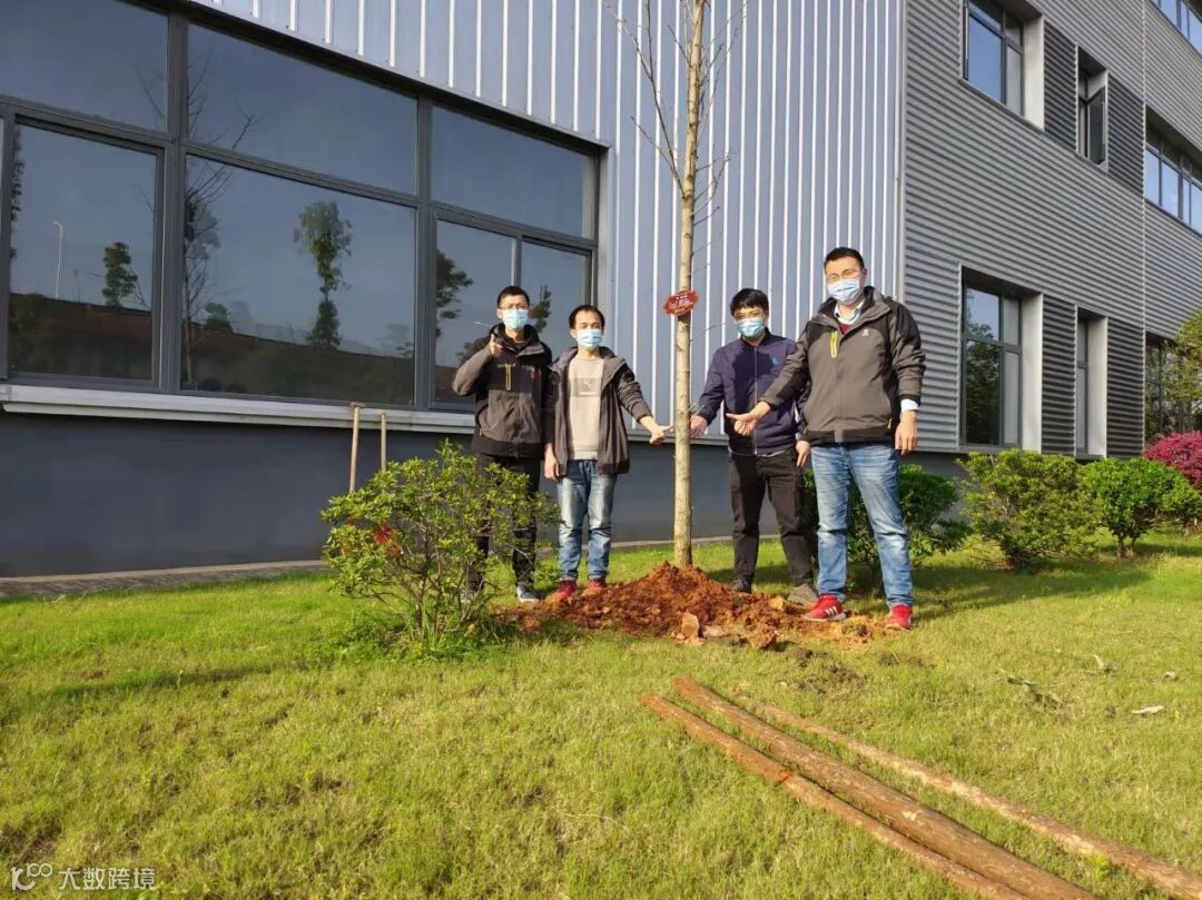 伴着三月的阳光,植树现场汗水与欢笑齐飞,员工们种下充满希望的树苗,挂上寄托美好愿景的树牌,共同在树前合影留念。
