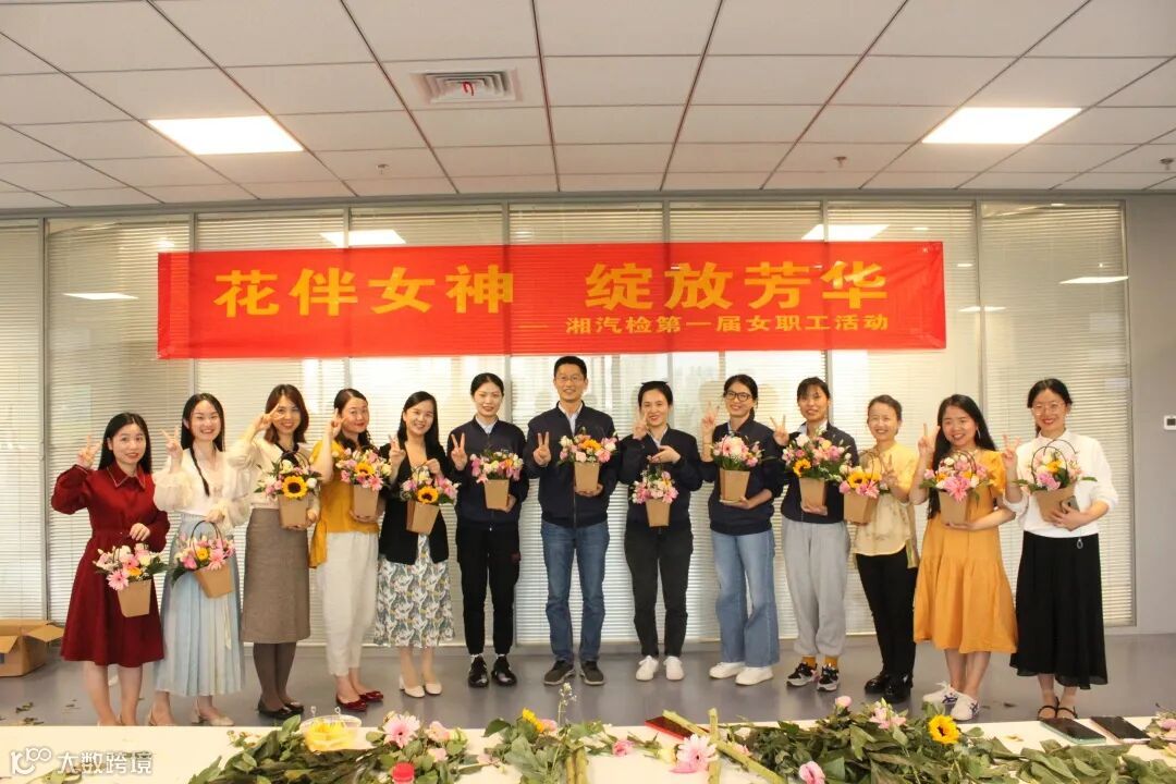 为进一步丰富职工文化生活、提高职工的精神文化素质与艺术修养,2021年5月20日下午,湖南机动车检测技术有限公司(简称“湘汽检”)“花伴女神,绽放芳华”第一届女职工活动在办公楼4楼活动室举行。湘汽检党支部书记、工会主席陈江波,副总经理申健,工会委员许向东、张可出席,全体女职工参与活动。