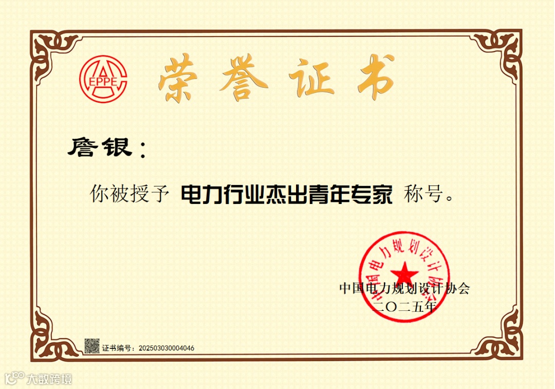 近日,中国电力规划设计协会公布了电力行业申报全国电力行业杰出青年专家第四批人选名单,福建院詹银成功入选,荣获“电力行业杰出青年专家”称号。