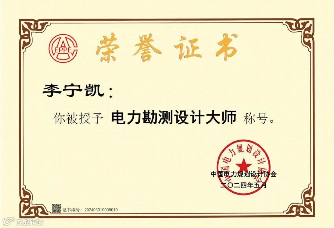 近期,中国电力规划设计协会公布电力行业申报全国工程勘察设计大师人才库第八批人选名单,福建院副总工程师李宁凯入选电力行业申报全国工程勘察设计大师人才库,授予李宁凯同志电力勘测设计大师称号。至此,福建院共有5位电力勘测设计大师。
