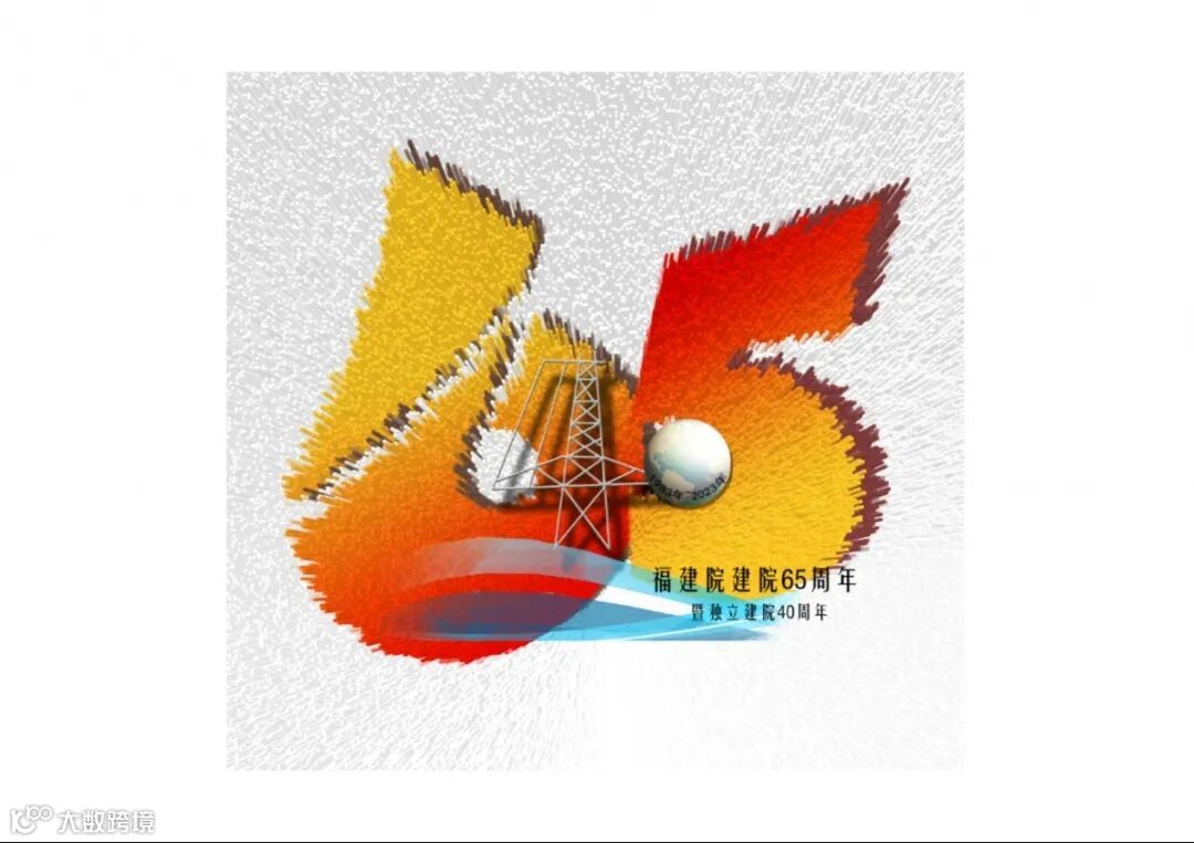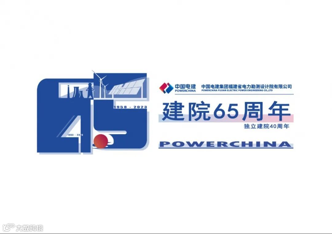 (2)背景:主图标用输电线路铁塔为背景图案,显示公司“电力勘测设计”的业务特点。铁塔下方用线条显示数字“65”表示时光流逝记录福建院建院六十五载。